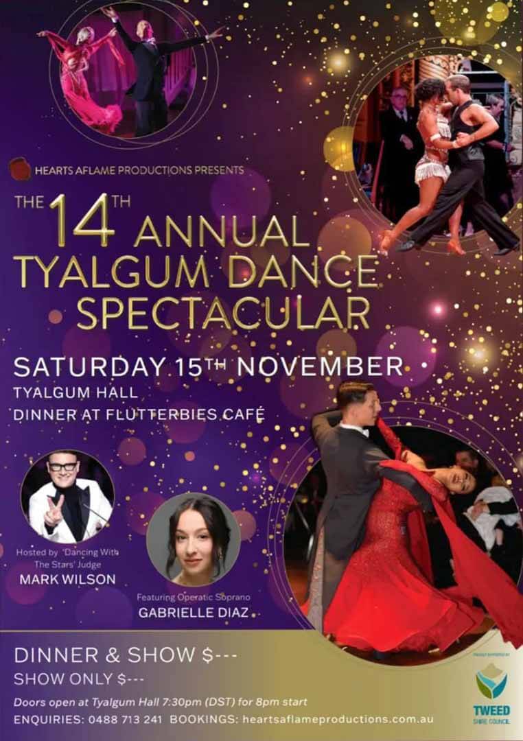 Hosted by ‘Dancing With The Stars’ judge Mark Wilson, this year’s line up presents the 2024 Australian Professional New Vogue Champions Christopher Wilson and Jordan Kopp Collins. For the first time in Tyalgum we welcome aboard Australian Latin American Championship finalists of 2024 Joshua O’Grady & Stephanie Cappis from Sydney to present the exciting Latin bracket of the show. The timeless and elegant Ballroom dances will be showcased by Australian Professional Ballroom finalists (2024) David Smith and Christina Park, also from Sydney.